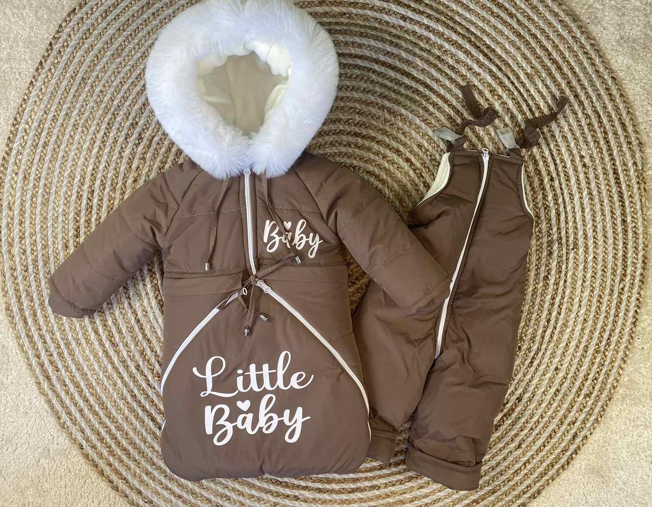 Зимовий дитячий теплий комбінезон-трансформер 3в1 для новонародженного на овчині: курточка конверт для ніг напівкомбінезон